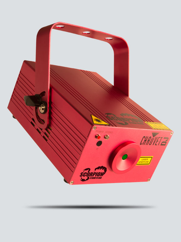 Scorpion Storm FX RGB is a tri-colored laser light that creates a star field effect of multi-colored patterns to enhance your event with depth and movement. Scorpion Storm FX RGB includes an IR remote for wireless control of all three colors and sound-activated auto programs.