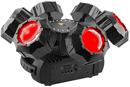 Helicopter Q6 is a multi-effect effect light designed to dazzle and energize the dance floor. It features adjustable RGBW beams, a round SMD strobe and a red/green pattern laser on a rotating base with continuous pan rotation creating unique and amazing effects. Its narrow, razor-sharp beams of RGBW light create astonishing aerial effects and the rotating red and green laser produces thousands of razor sharp beams that cover a large area. Helicopter Q6 is easy to control using automated and sound-activated programs, master/slave, DMX or an optional IRC-6 remote.